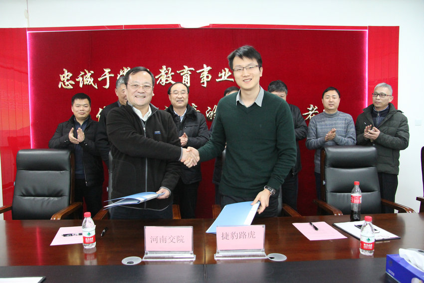 12月14日下午,学院与捷豹路虎汽车贸易(上海)有限公司在新校区签订校企合作意向书。捷豹路虎汽车贸易(上海)有限公司经理俞政栋,院长李强、副院长贺绍华、解福泉及招生就业处、汽车学院相关负责人参加意向书签订仪式。