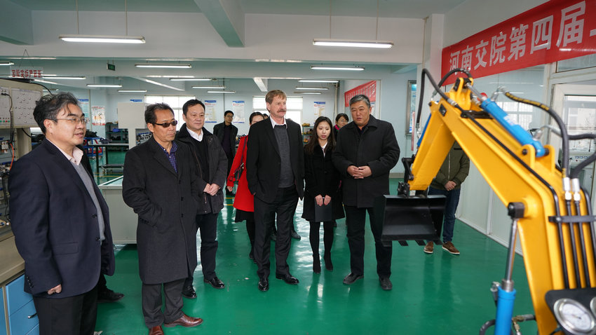 Doug Callbeck副校长、谷丰院长在航海路校区和郑东新校区进行了考察。在汽车学院、公路学院、工程公司、建筑工程系、交通信息工程系、物流学院等教学院系,他们详细了解了教学运行、实验实训条件、校企合作等方面的情况。在学院校史馆,他们详细了解了学院60多年的发展历程,并在签字薄上签字留念。