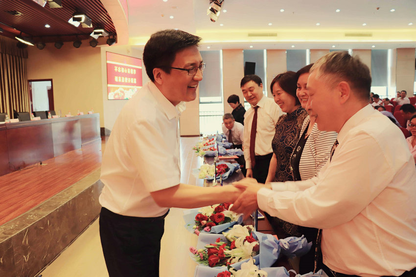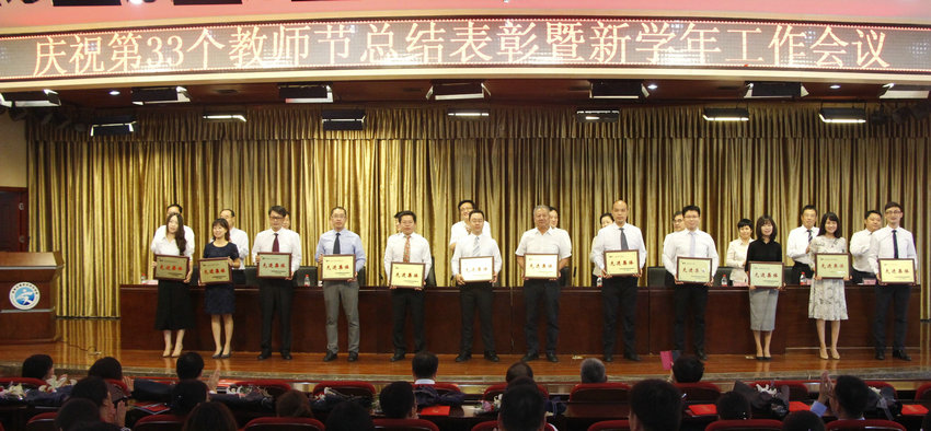 大会在雄壮的国歌声中开幕。首先,刘志伟处长宣读省交通运输厅贺信,传达厅党组对学院全体教职工的节日祝福和良好祝愿;夏连学副院长宣读学院《关于表彰2016-2017学年先进集体、先进个人的决定》。在欢快的乐曲声中,“优秀教师”、“先进教育工作者”、“优秀辅导员”、“十佳教师”和“十佳教育工作者”和“先进集体”代表依次走上主席台领奖,交通信息工程系兰岚老师代表优秀教师发言。当11位从教33年以上的老教师走上主席台时,会场响起了经久不息的掌声,向潜心育人的老教师表达深深的敬意和祝福。