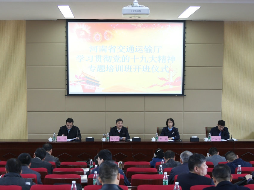 3月12日至3月16日,由河南省交通运输厅人事教育处主办、学院承办的学习贯彻党的十九大精神专题轮训班(第一期)在学院郑东校区顺利举办。河南省交通运输厅党组成员、副厅长刘兴彬、学院党委书记曹焱、院长李强、厅人事教育处处长刘志伟等出席开班仪式。