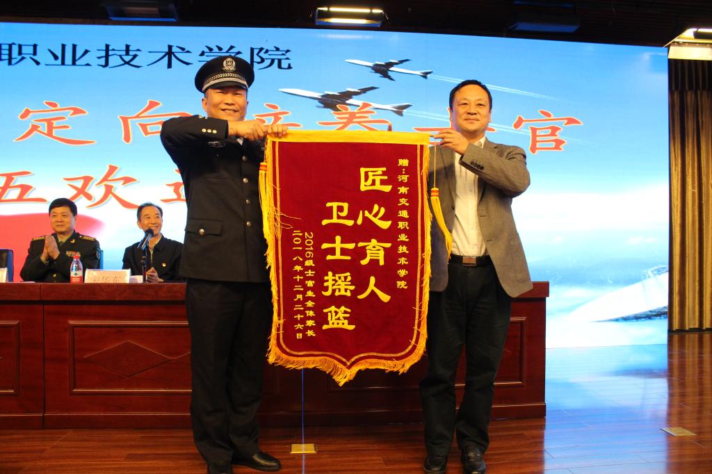 宋华东指出,在省委省政府的正确领导下,省交通运输厅高度重视国防建设和军民融合工作,列支专项资金用于国防交通建设和定向士官培养;河南交院定向培养士官工作,特色鲜明、亮点突出、成效显著。经过三年多的探索发展,河南交院的定向培养士官工作既培养了一批充分代表学院教学质量水平,满足军队需要的高素质高技能人才,又丰富和提升了学校的气质形象,打造了河南交通职业教育军民融合的品牌和名片,为河南交通运输服务国家战略注入了新的内涵,增添了新的亮点;希望河南交院进一步巩固和发展定向士官培养工作成果,不断开创军民融合发展的新局面,再创服务军队和国防建设的新成绩。希望即将迈入新征程的士官同学们不忘初心,继续前行,坚定政治信仰,做有灵魂的革命军人;提升军事技能,做有本事的革命军人;培养战斗意志,做有血性的革命军人;培养道德素养,做有品德的革命军人,为教育强国、交通强国、军事强国,实现中华民族伟大复兴的中国梦做出积极贡献。