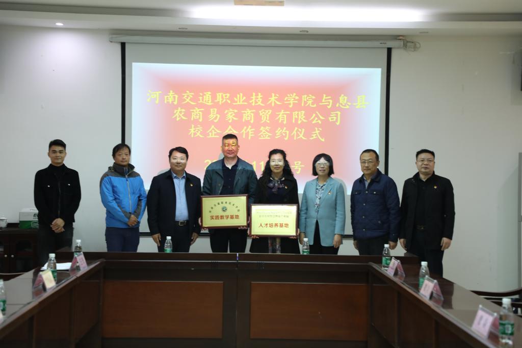 随后, 在息县产业集聚区电子商务产业园,举行了学院与息县易家商贸有限公司“校企合作”签约仪式,曹焱和李博出席签约仪式并授牌。此次签约是我院对息县精准对接,深层次合作与帮扶的具体体现,双方将在人才培养与输送方面共同合作,切实解决息县电子商务与物流人才短缺的实际问题。