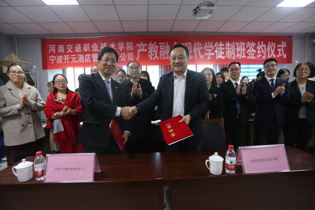 12月2日,学院与宁波开元酒店管理有限公司举行校企合作签约仪式。院长李强、副院长解福泉、教务处、商务旅游系相关负责人,宁波开元酒店管理有限公司总经理来荣法,人力资源总监周晓君、招聘经理王郑华以及“开元现代学徒制班”学生参加签约仪式。仪式由商务旅游系主任陈振锋主持。