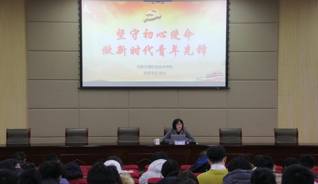 12月20日下午,学校党委书记曹焱在行政楼一楼报告厅以“坚守初心使命 做新时代青年先锋”为主题为第十九期业余党校学员讲了一堂生动的党课。党课由组织部部长魏功主持。