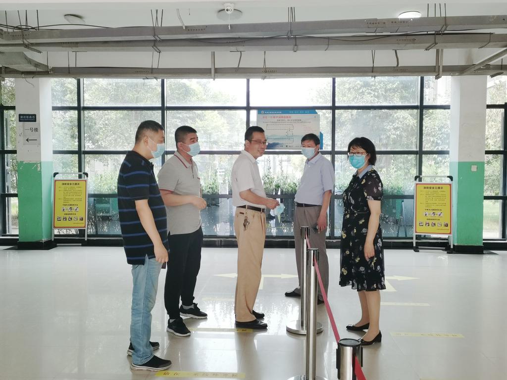 检查中,曹焱、刘志伟分别听取了各有关部门关于学生返校复学工作准备情况的汇报,详细了解学生返校报到流程、防疫物资储备、应急处置演练及食堂、宿舍等处环境卫生保洁、通风消毒等情况。