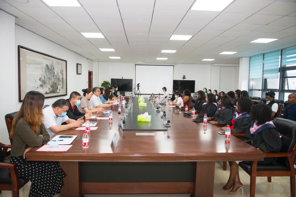 我校物流学院教师赵丽燕代表教师发言,她回顾了与南非学生教学、交流过程中的付出与收获,并给予结业的南非学生美好的祝福,希望他们将所学的知识带回国,为南非国家建设贡献力量,成为中南两国间的友谊桥梁。南非留学生代表Jabulile Happiness Mawisa代表全体学生,对学校领导和老师的辛勤付出表示由衷的感谢,并表示他们将铭记师生情、母校情,为两校友谊、中南友谊做出自己应有的贡献。随后,与会领导为全体南非留学生颁发结业证书,并与他们合影留念。