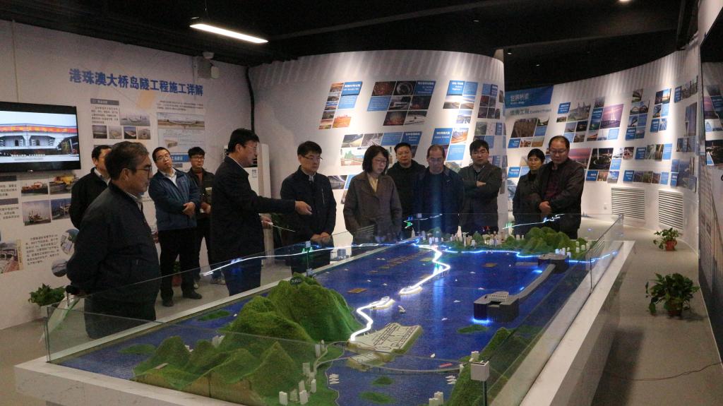 曹焱一行先后参观了科普馆一楼河南高速公路云数据平台、河南高速公路路网数字沙盘、河南省高速公路成就展板、三山一滩实体模型、数字墨水信息屏、双千工程专版等,以及二楼的中国高速公路发展成就专区、尧栾西高速全景沙盘教学区、高速公路路桥隧展板、世界优秀工程专版、港珠澳大桥沙盘等,公路学院院长游江涛全程进行了讲解。