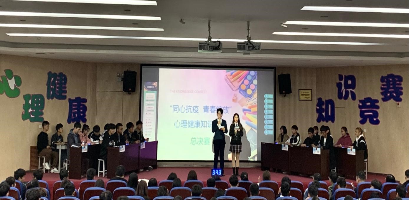 学校还组织了心理健康知识竞赛,竞赛分两阶段。各院系组织初赛,选拔优秀学生参加学校总决赛。总决赛分为“志在必得、抢滩登陆、案例分析和绝地反击”4个模块,整场比赛秩序井然,精彩纷呈,活动现场气氛庄重而热烈。抢滩登陆部分将比赛气氛推向了高潮,引得观众席上时而掌声,时而扼腕叹息;绝地反击部分不仅考察参赛选手对知识的掌握,还要求参赛选手对全局的权衡以及在这种紧张状态下的心理素质;现场观众答题环节,同学兴致高昂,积极参与,不仅赢得了纪念礼品,更重要的是学习了心理健康知识、掌握积极帮助同学的技巧。
