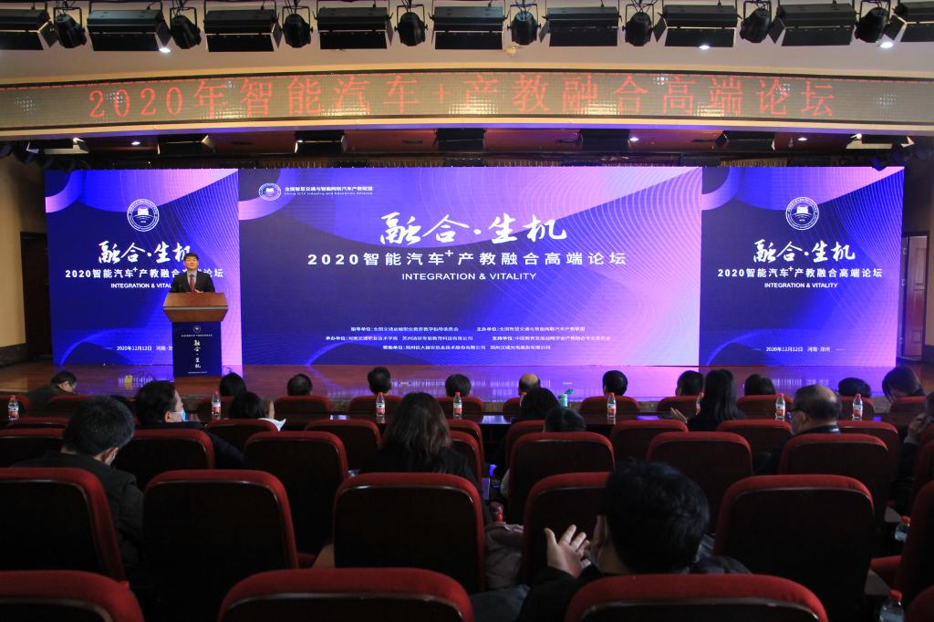 12月12日上午,2020年智能汽车+产教融合高端论坛在河南交通职业技术学院举行。论坛由全国智慧交通与智能网联汽车产教联盟主办,河南交通职业技术学院(以下简称:河南交院)和苏州清研车联教育科技有限公司联合承办,全国交通运输职业教育教学指导委员会、中国教育发展战略学会产教融合专业委员会提供指导和支持。论坛以“融合 生机”为主题,来自政府、科研院所、行业企业、交通职校的领导和专家学者围绕智慧交通人才培养开展高端对话,携手构建智能汽车领域产教融合育人平台。