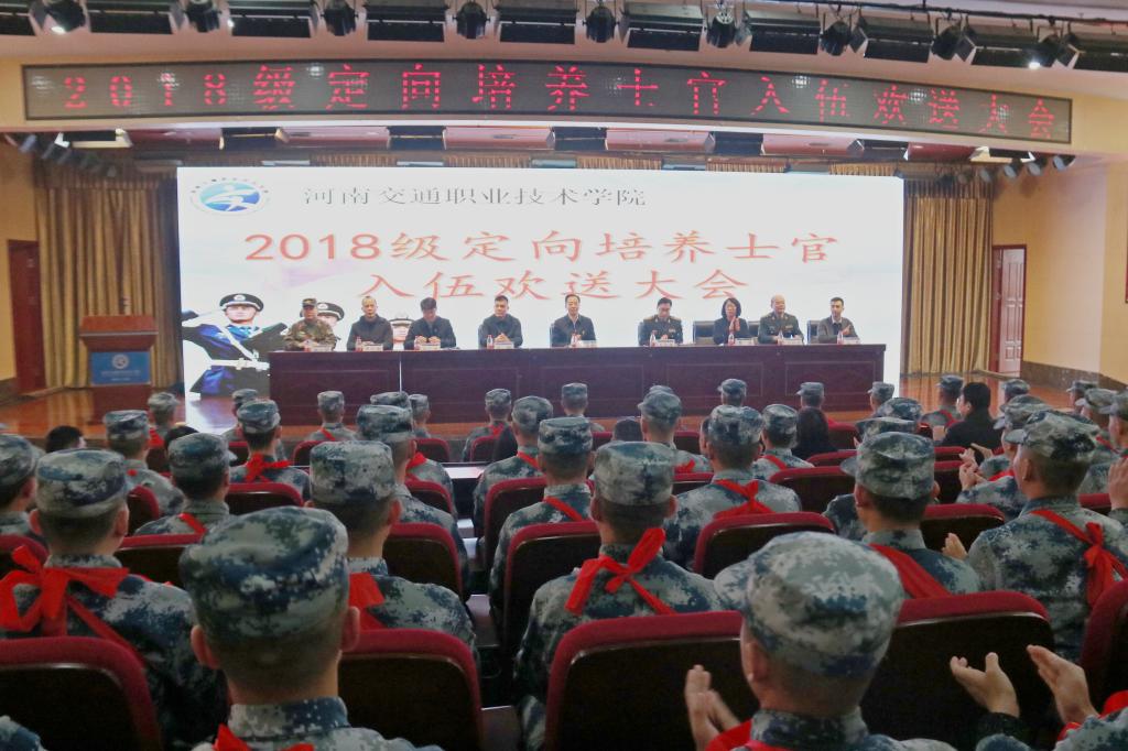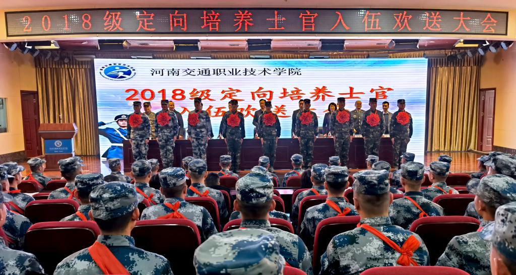 12月28午,学在东校区举行仪式欢送2018级定向培养士官光荣入伍。河南省军区动员局局长省征兵办公室副主任红波、河南省交通运输厅副厅长宋华东、省交战办主任关毅、郑州警备区动员处处长刘同兴、省教育厅职成教处调研员李永海、省交通运输厅人事教育处副处长王勇、校领导曹焱、张瑞春接兵部队人员出席大会。校长刘志伟主持大会。