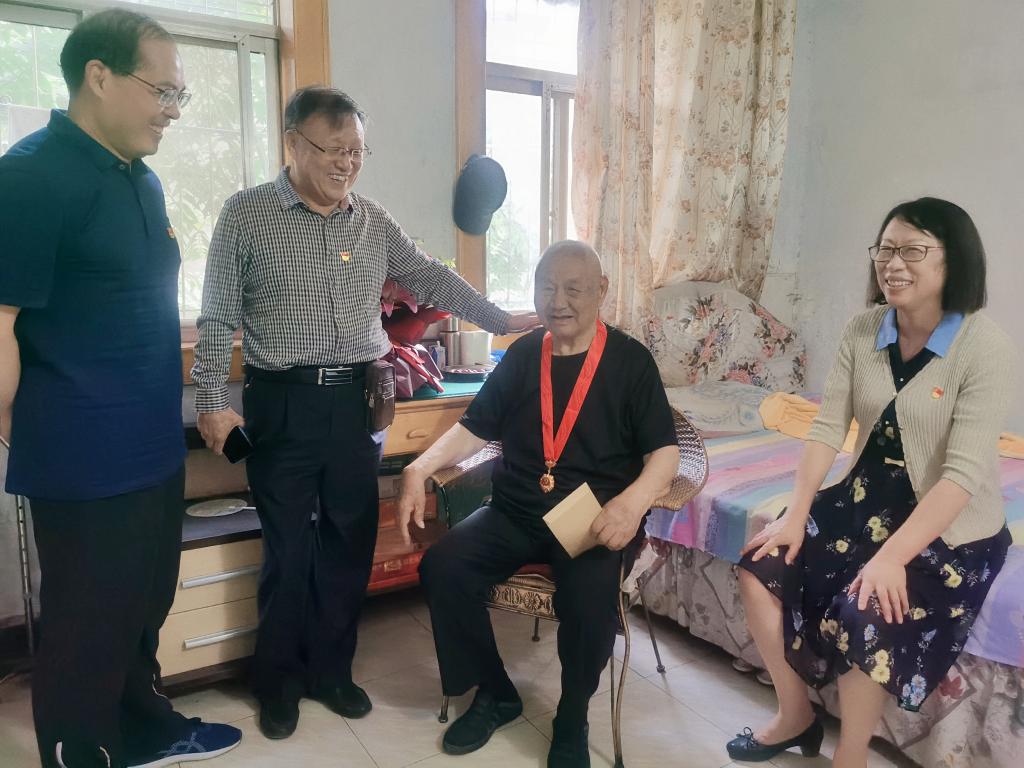 在中国共产党成立100周年到来之际,为进一步增强党员的荣誉感、归属感和使命感,激励新时期广大党员传承和发扬党的优良作风,6月26日,学校党委书记曹焱、党委副书记孙建立带队走访慰问退休老党员代表。慰问期间,为党龄满50年的老党员颁发了“光荣在党50年”纪念章,为困难党员发放了慰问金,并向他们转达党组织的关怀和祝福。