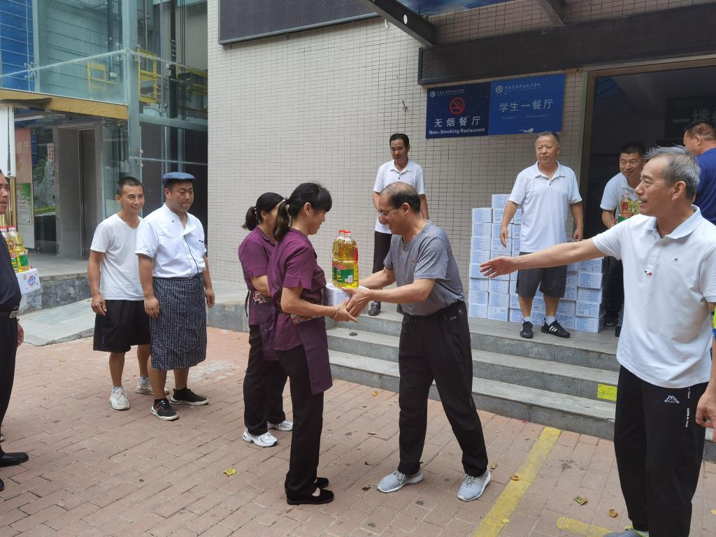 7月28日上午,党委副书记孙建立带领工会负责人一行到后勤服务集团,看望慰问在校防汛救灾工作人员,并为他们送来慰问品。