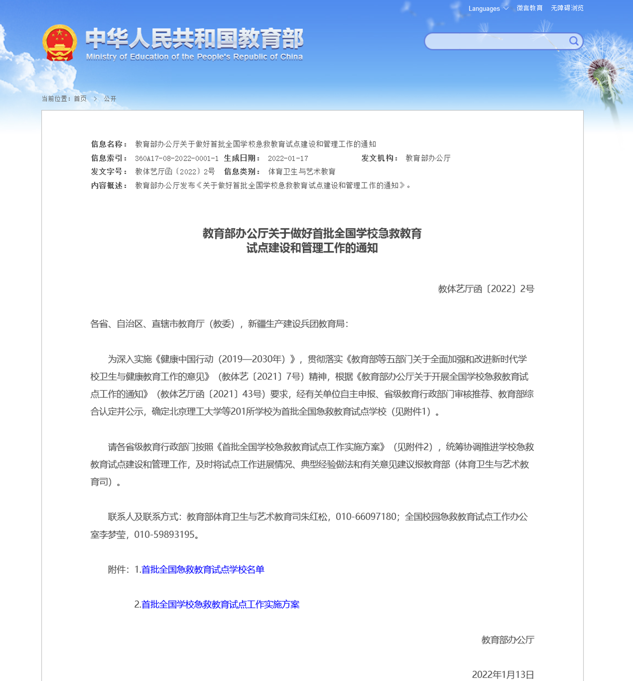 近日,教育部办公厅印发《关于做好首批全国学校急救教育试点建设和管理工作的通知》,公布首批201所全国急救教育试点学校名单和《首批全国学校急救教育试点工作实施方案》。河南省仅有7所高校成功入选首批全国学校急救教育试点学校,我校榜上有名。