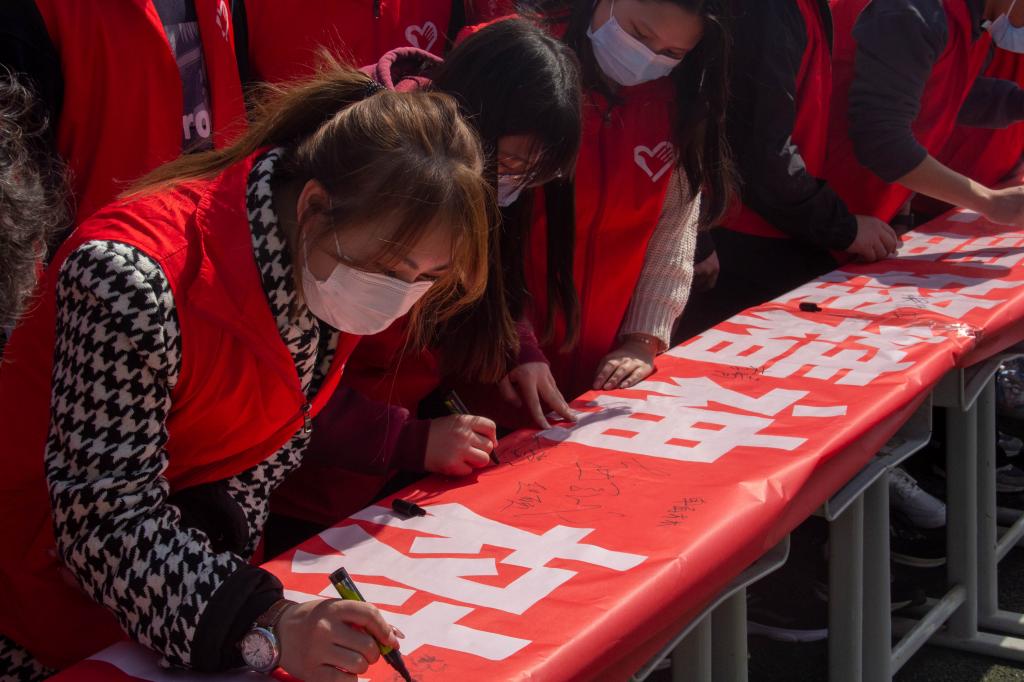 最后,师生们在学习雷锋的横幅上签下自己的名字。同学们纷纷表示要坚定不移的弘扬雷锋精神,主动帮助他人,树立坚定的理想信念,不负时代、不负韶华,争做新时代建设中国特色社会主义的“螺丝钉”。