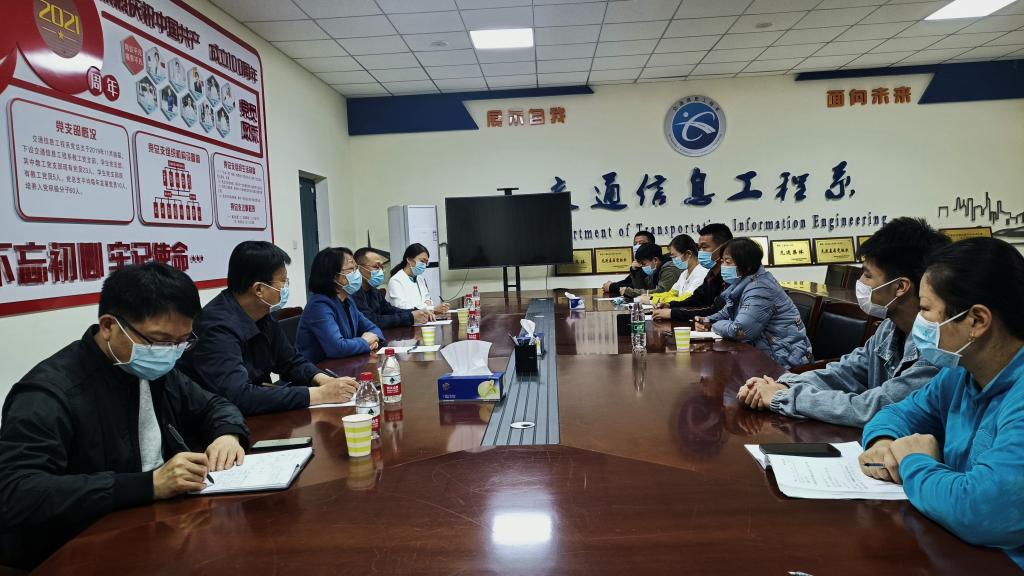 会上,交通信息工程系汇报了留校工作队在疫情防控、学生管理、环境消杀、信息摸排等方面的工作情况。下沉院系的职能处室党员介绍了参与院系工作的情况并提出了意见建议。