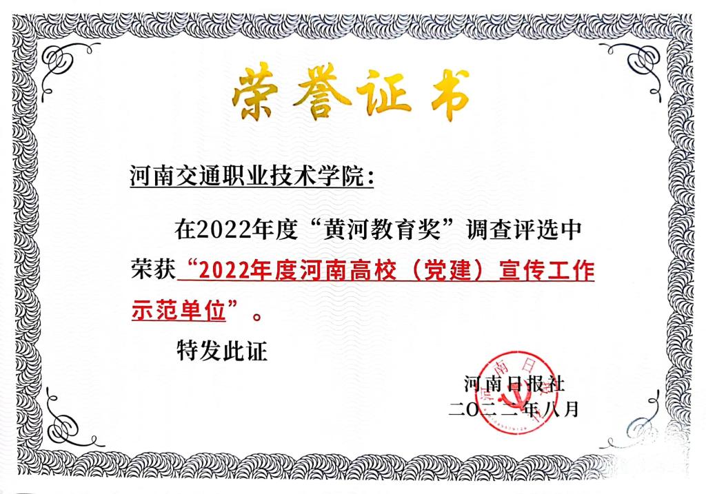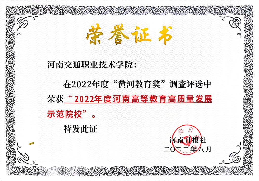 近日,河南日报社、中科科技培训中心联合开展的河南省第十三届“黄河教育奖”推选活动结果揭晓,我校获评“2022年度河南高等教育高质量发展示范院校”和“2022年度河南高校(党建)宣传工作示范单位”“两项荣誉。