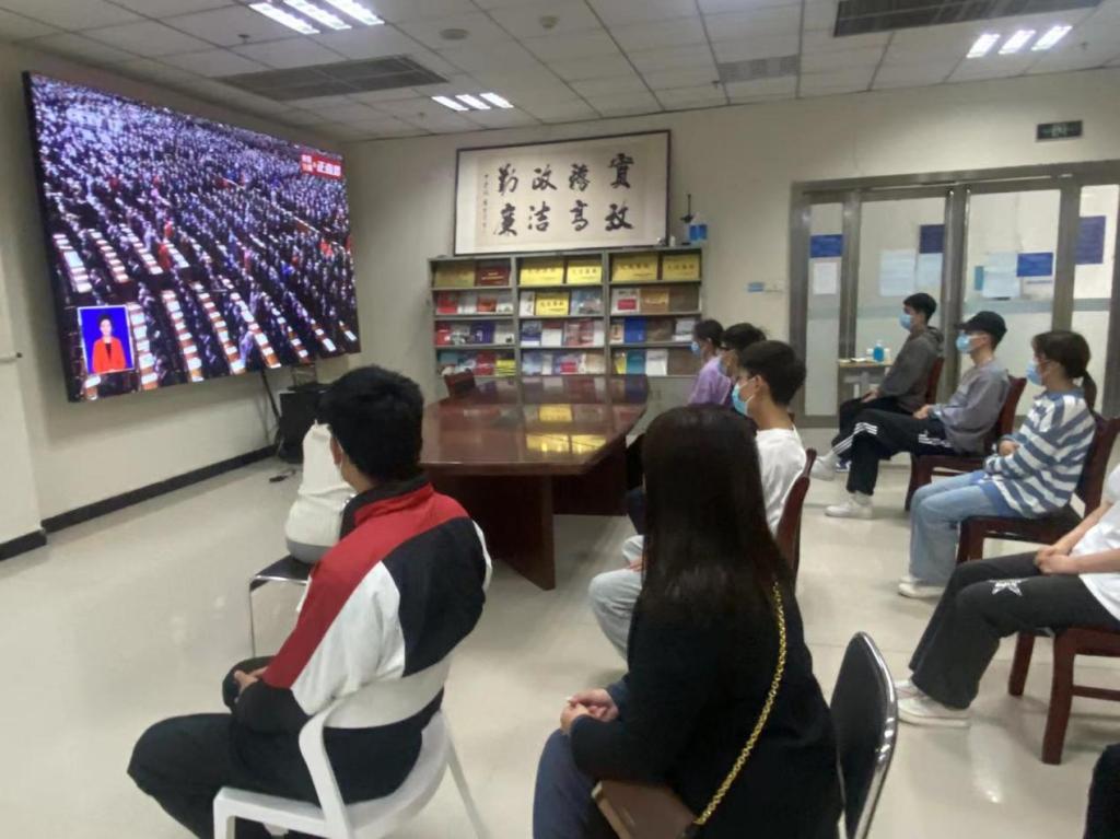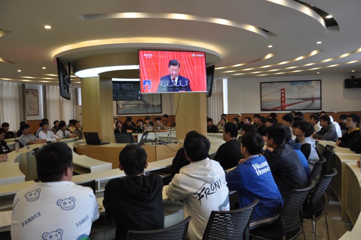 在会议室、多功能报告厅、多媒体教室、图书馆、餐厅、学生宿舍、小浪底实训基地、驻后杨村扶贫工作队驻地、交院技术集团……学校万余名师生共同观看实况直播。同时,居家办公的教职工自发打开电视机、电脑、手机等终端,与留守的师生一道,共同见证这一历史时刻,共同聆听习近平总书记代表第十九届中央委员会所作的报告。