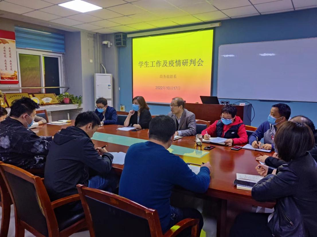 研判会上,商务旅游系主任陈振锋传达了上级和学校疫情防控小组的疫情防控政策,家就商务旅游系目前防疫工作和学生工作存在的问题进行研究讨论。下沉一线干部表示,有决心有信心与商务旅游系的师生一起,做好防疫工作,不辜负学校领导的工作安排。