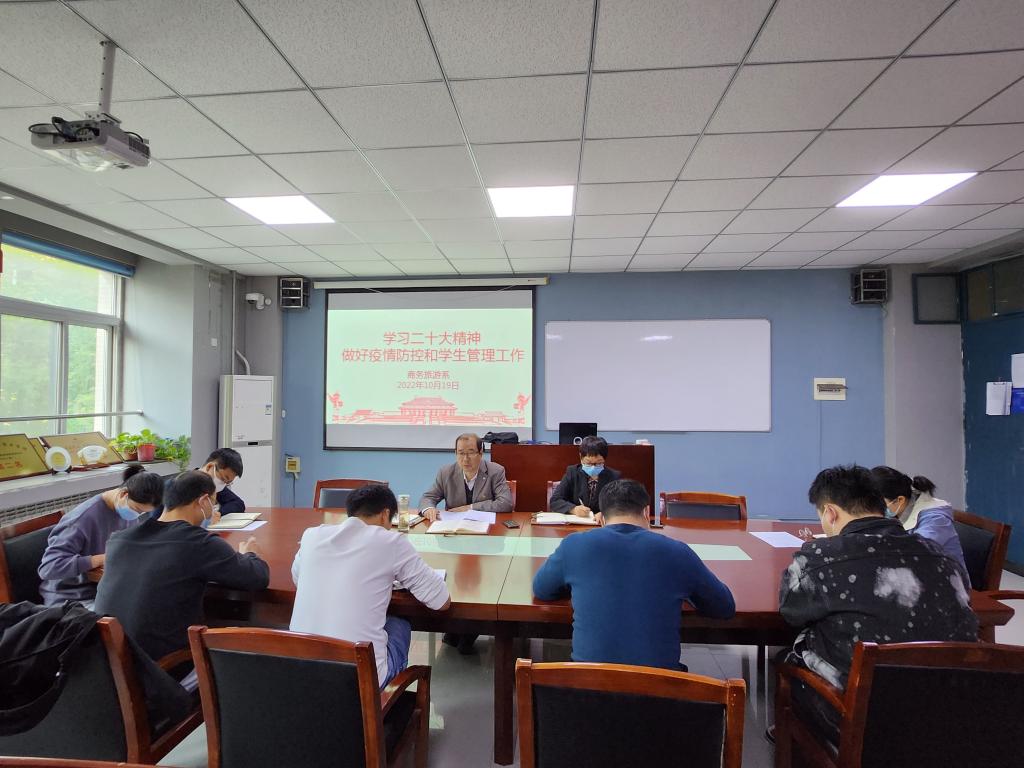 商务旅游系党总支:组织召开学习贯彻党的二十大精神专题会议,留校教师和居家办公教职工线上线下同步参加会议。会议集中学习党的二十大报告,传达落实学校第14次党委(扩大)会议精神。会议要求,一要认真学习党的二十大精神,把思想和行动统一到党的二十大精神上来,二要全面贯彻党的教育方针、落实立德树人根本任务;三要在党的二十大精神指导下推动商务旅游系教育教学工作高质量发展。