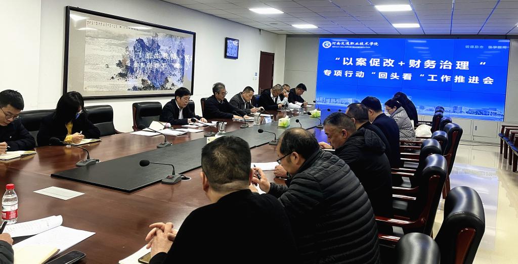 近日,我校“以案促改+财务治理”专项行动“回头看”工作推进会在学校行政楼四楼会议室召开。副校长夏连学出席会议,学校“以案促改+财务治理”专项行动“回头看”工作领导小组成员参加会议。