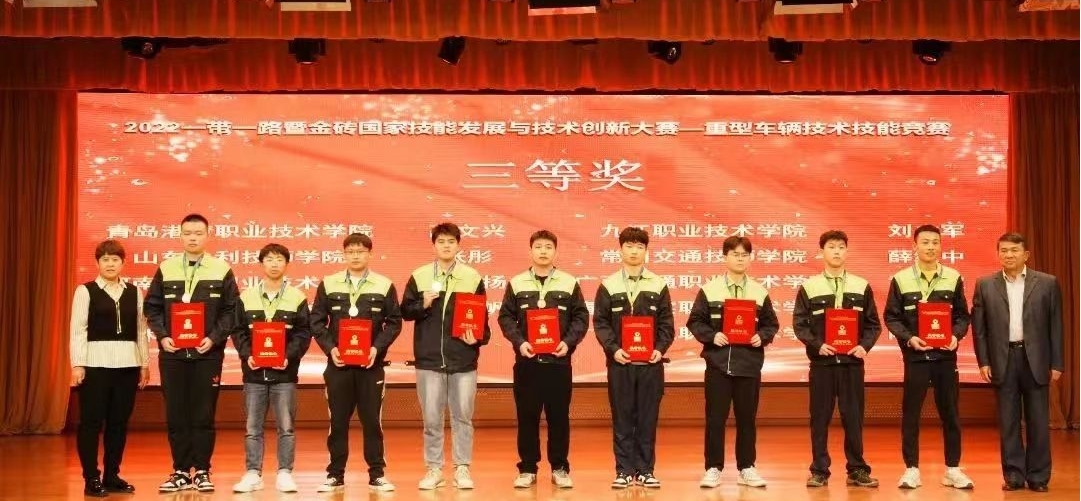3月31月至4月1日,2022“一带一路”暨金砖国家技能发展与技术创新大赛“重型车辆技术”赛项决赛在济南职业学院举行。我校汽车学院选手赵昱扬同学荣获三等奖,吴永建老师被大赛组委会评为“优秀裁判员”。