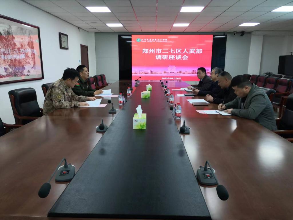 4月6日下午,郑州市二七区人武部部长梁江涛、参谋郭绪珂一行来我校开展武装工作实地调研,副校长夏连学出席座谈会。