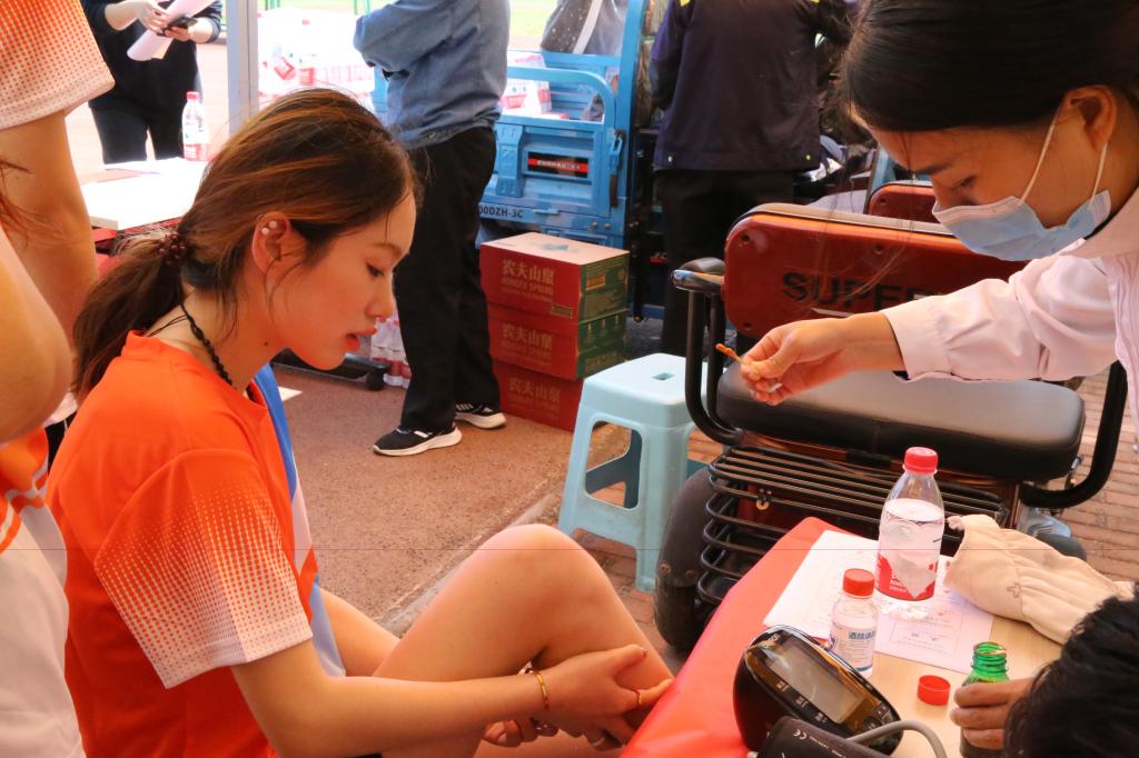 为保障运动会的顺利开展,运动场上还设置了志愿服务岗、医疗救护点、饮用水领取点等,为运动员们提供各类服务,为比赛保驾护航。