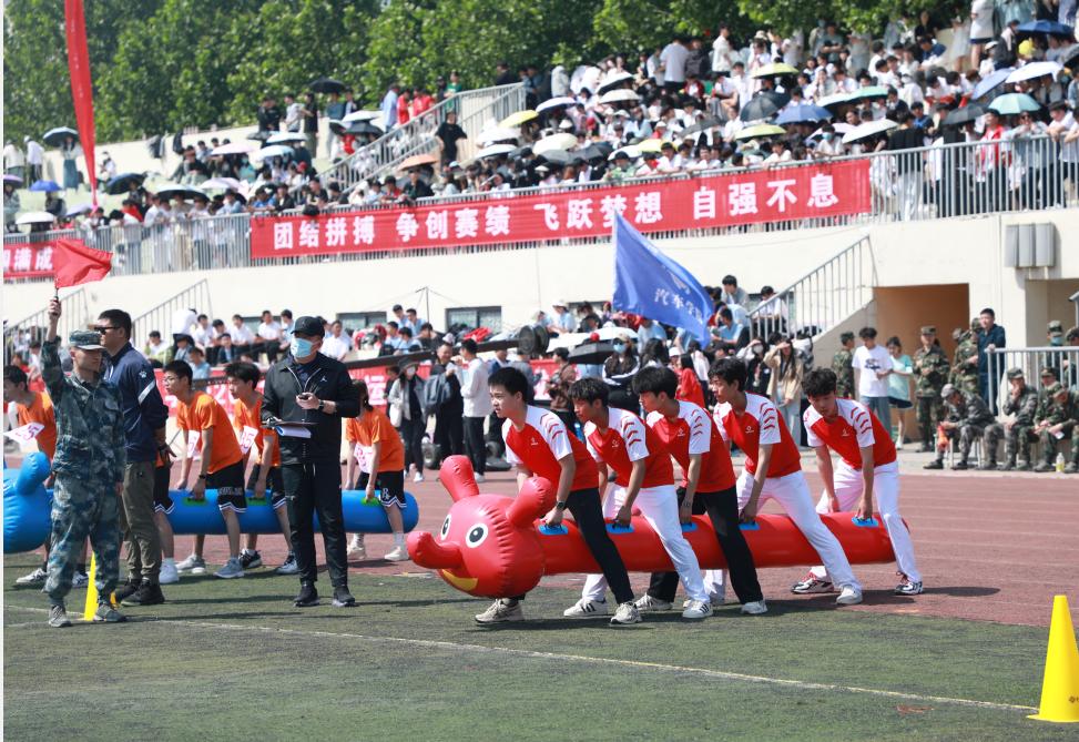 “我宣布,河南交通职业技术学院2023年春季运动会正式开始!”伴随着焦宏涛洪亮的声音,各项赛事有序开始。期间,全校2000余名运动员分别进行了“疯狂毛毛虫”竞速、火线营救、珠行万里等9个集体项目和跳高、跳远、铅球3个田赛项目的比拼。赛场上,运动员齐心协力、奋勇争先,裁判员严明公正、认真负责,啦啦操队员踏歌起舞、青春飞扬,观众文明观赛、呐喊助威,激昂的加油声、欢呼声此起彼伏,五彩斑斓的队服和洋溢着青春朝气的笑脸勾画出一道道靓丽的风景线。