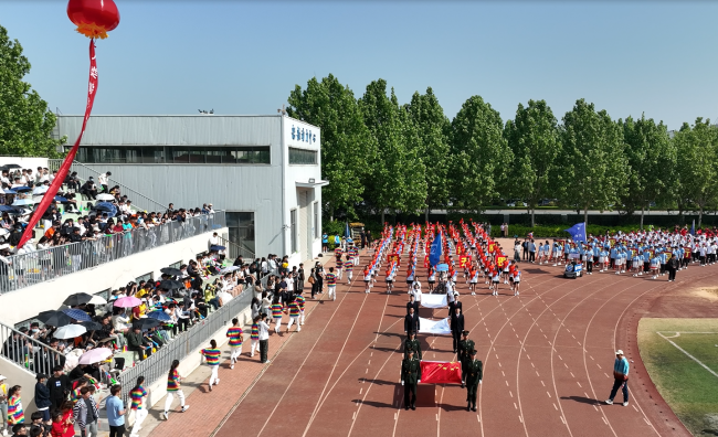 焦宏涛致开幕词,他指出,运动会,既是对学校体育工作的集中展示,也是对体育教育成果的全面检阅。希望广大同学、老师们以此为契机,领略体育魅力,享受运动快乐,凝聚奋斗精神,充分发挥敢于挑战、团结协作、绝不服输的精神风貌和昂扬斗志,用运动之拼搏,谱青春之华章。希望广大运动员在运动场上比技术、比思想、比作风、比纪律,赛出成绩、赛出风格、赛出友谊、赛出团结;希望裁判员恪守“公开、公平、公正”的竞赛准则,严格遵守运动会的各项规则和纪律,进行公正的裁决;希望全体工作人员坚守岗位,做好后勤服务保障工作;希望在场观众遵守“文明、守礼、友好”的观赛要求,尊重比赛和选手,为运动健儿们加油喝彩。