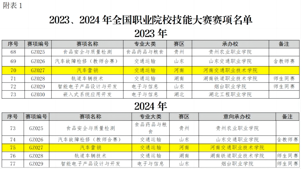 5月4日,教育部发布《关于举办2023年全国职业院校技能大赛的通知》,公布了2023、2024年全国职业院校技能大赛赛项名单、赛区及承办院校,我校获得2023年和2024年汽车营销赛项承办权,这也是学校首次获得全国一类赛事承办资格。