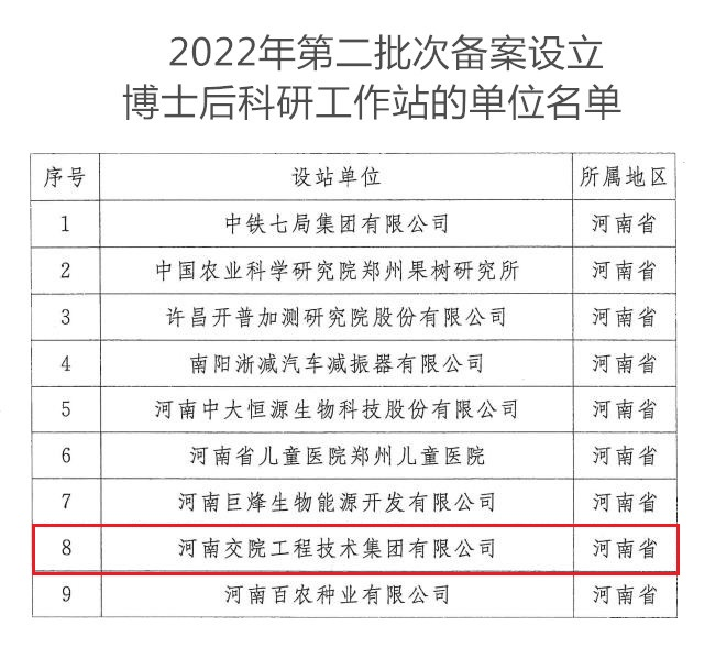 近日,经全国博士后管理委员会办公室批准,我校工程技术集团有限公司以下称交院工程技术集团)成功获批国家级博士后科研工作站,标志着我校人才工作取得重大突破,为“科技赋能,人才助推高校高质量发展”注入更多内涵,增添更大动力!
