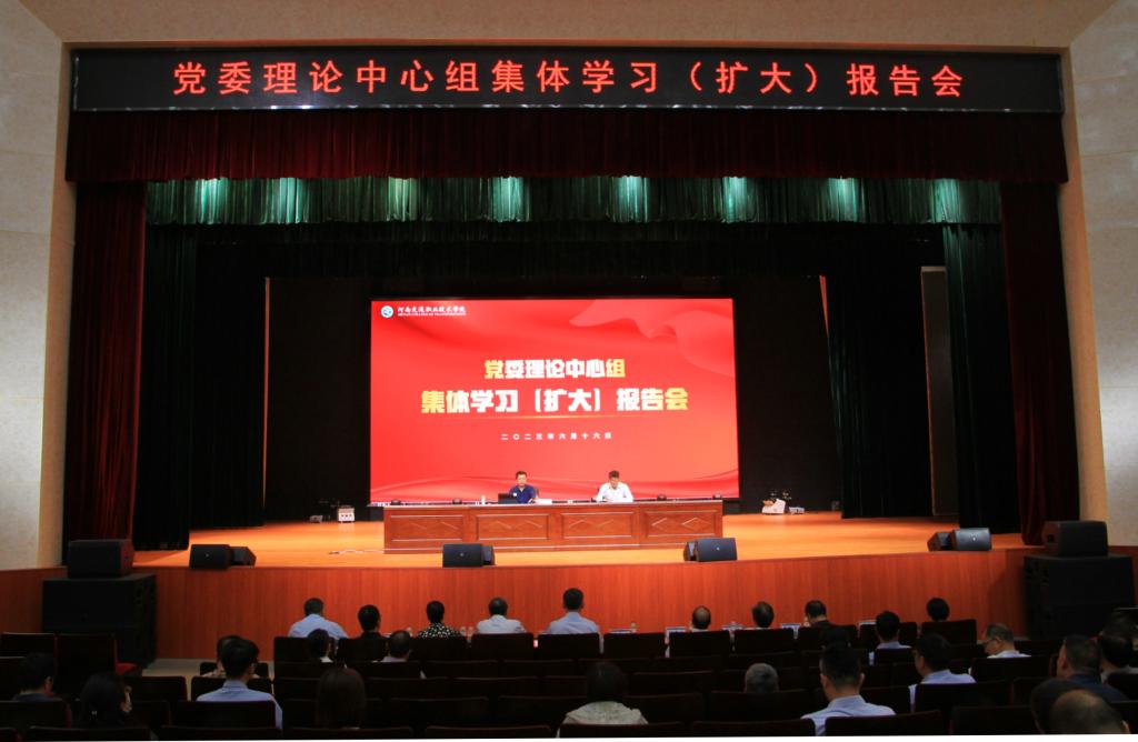 6月16日上午,学校在新校区文化艺术中心举行党委理论学习中心组集体学习(扩大)报告会,会议邀请河南省委党校宋伟教授作学习贯彻习近平总书记视察河南重要讲话精神专家辅导报告。学校党委委员参加学习,党委书记刘志伟主持学习会。