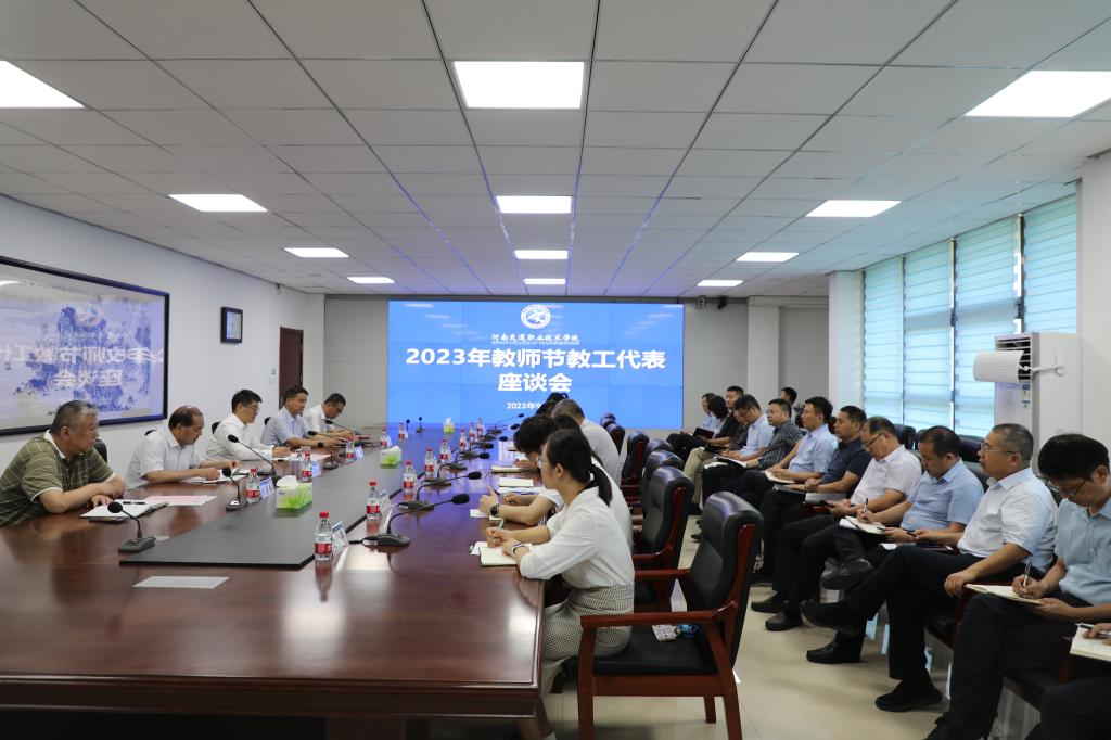 近日,学校东校区召开庆祝第39个教师节教职工代表座谈会党委书记刘志伟出席会议并讲话,校领导孙建立、张瑞春朱学军出席会议,教职工代表相关职能部门、各院(系、部)负责人参加座谈会议由校长焦宏涛主持。