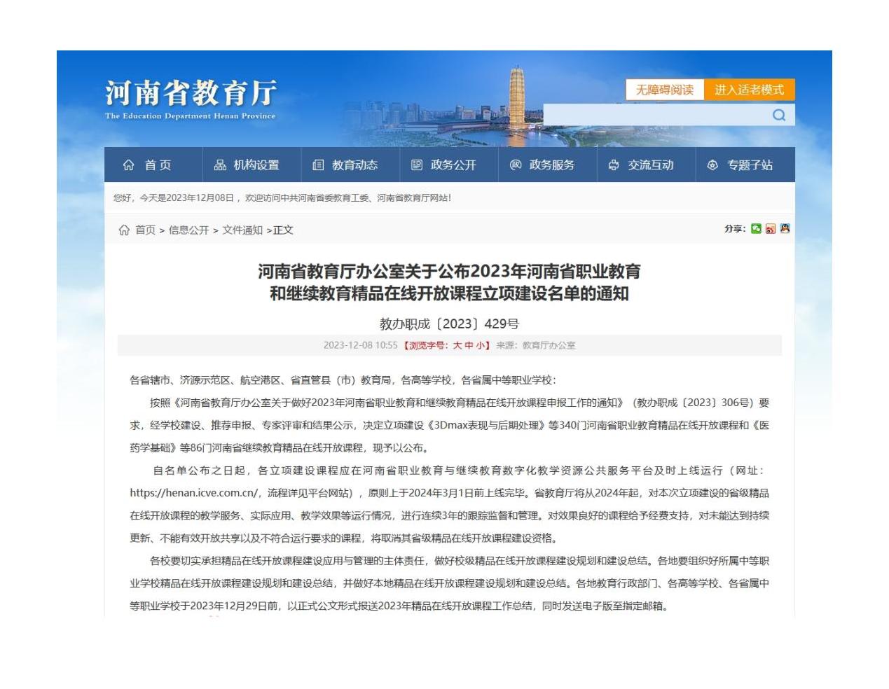 学校8门课程获批2023年河南省职业教育和继续教育精品在线开放课程立项建设