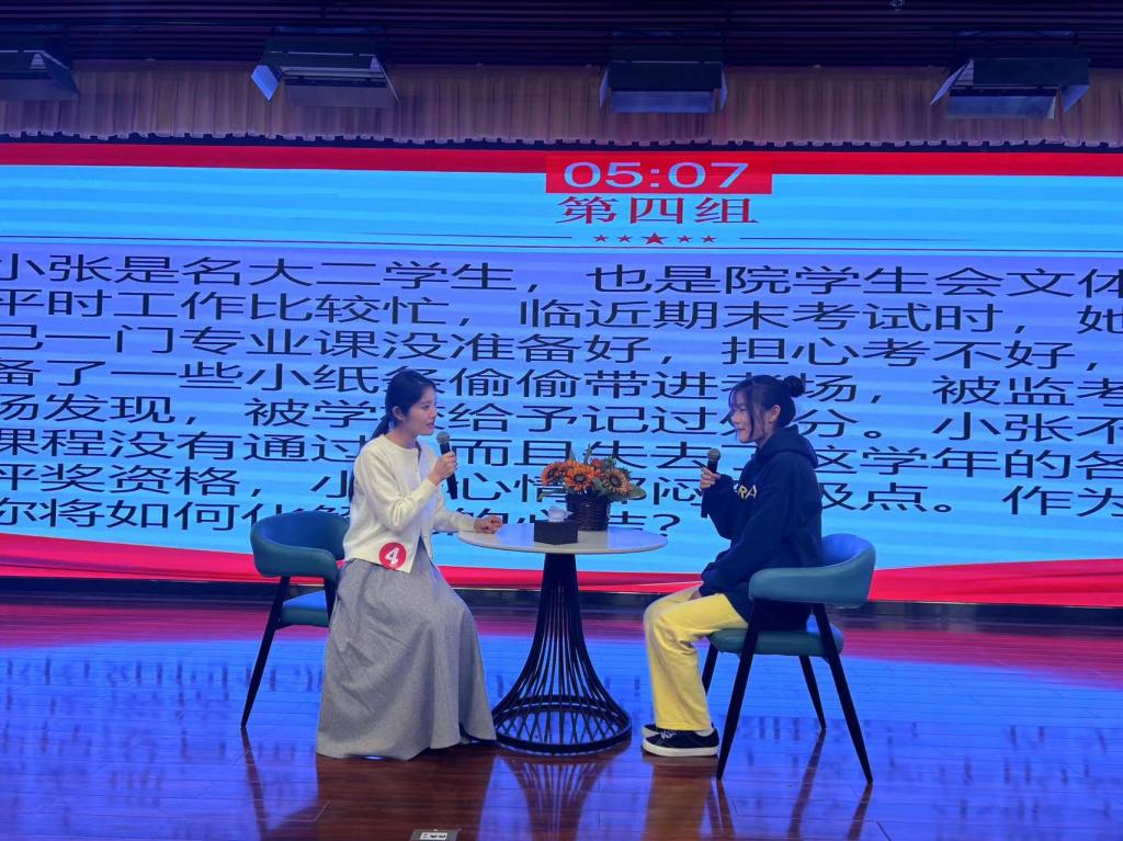 大赛分为基础知识测试、案例研讨和谈心谈话三个环节,全面考察和展示我校辅导员队伍的理论水平、职业能力和专业素养。48位辅导员参加笔试和案例研讨,12位成绩优异者晋级进入谈心谈话决赛环节。决赛上,参赛选手们紧紧围绕辅导员工作“九大职责”、深入把握学生成长成才规律、有效结合自身工作实际,针对比赛题目与助演学生展开深入细致的谈心谈话和循循善诱的教育引导,充分展现出我校辅导员扎实的理论素养、过硬的素质本领和昂扬的精神风貌。