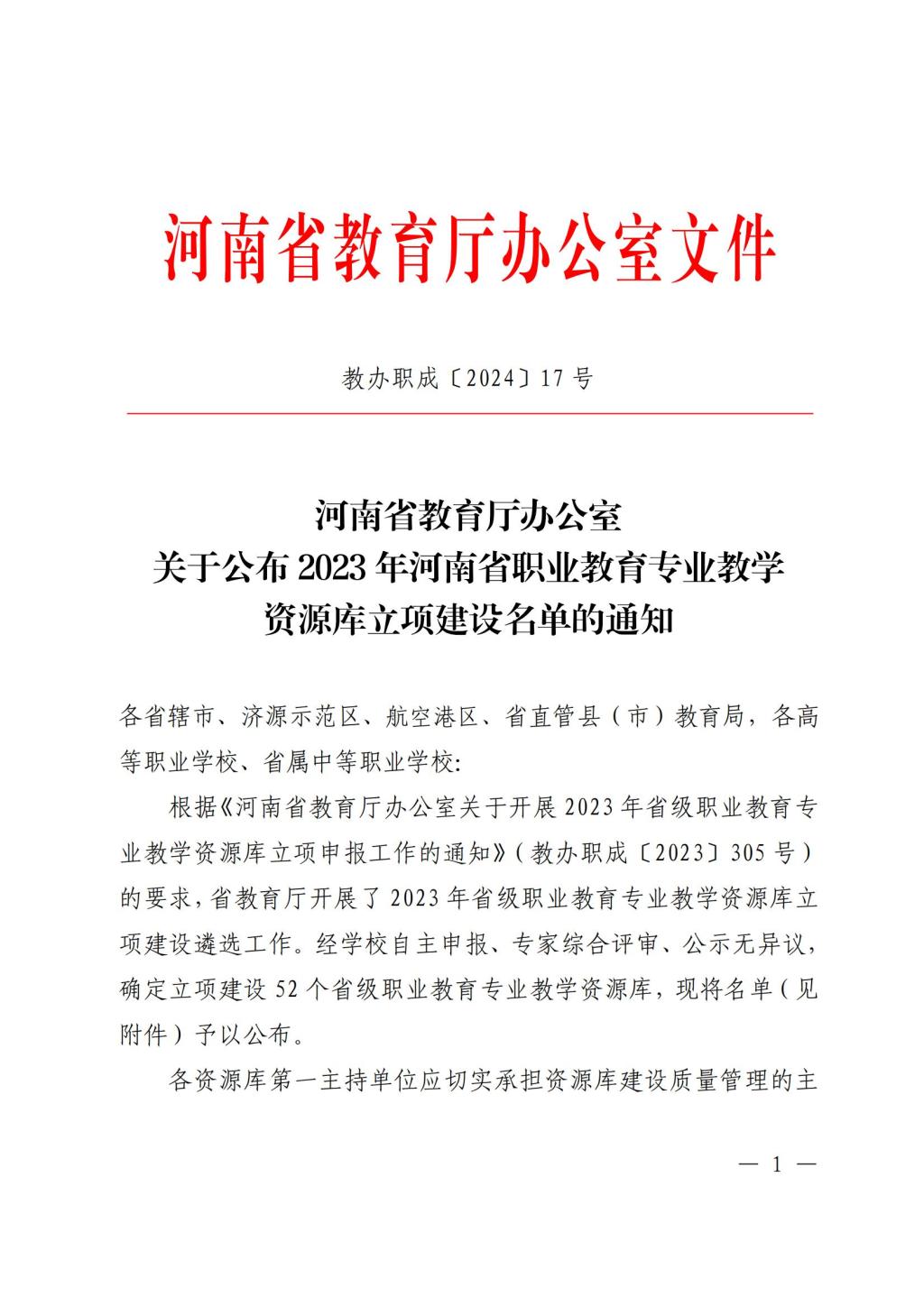 学校2个资源库获批2023年河南省职业教育专业教学资源库立项建设