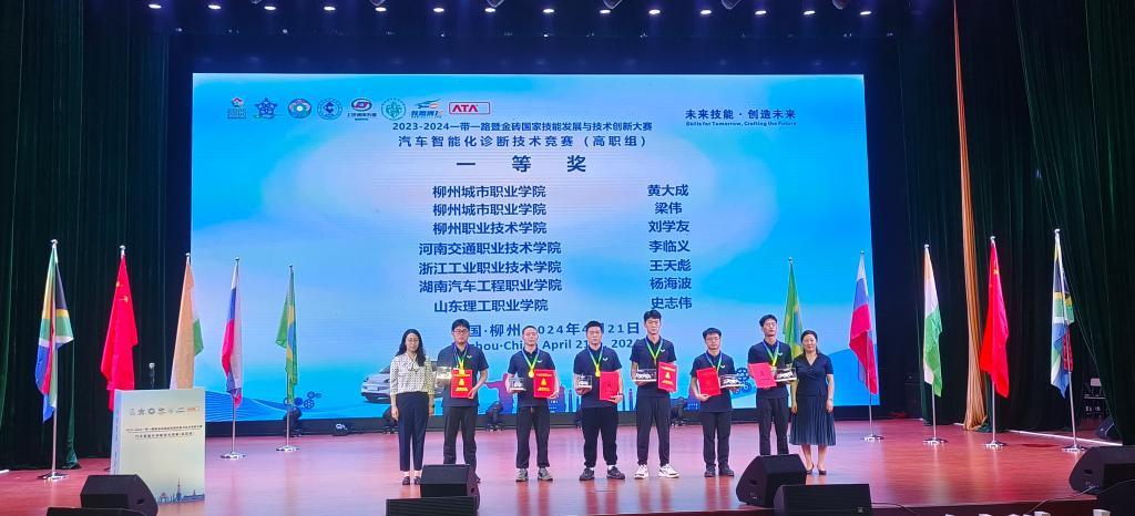 4月18至21日,2023-2024“一带一路”暨金砖国家技能发展与技术创新大赛汽车智能化诊断技术赛项在柳州城市职业技术学院举办。国内59支代表队和国际7支代表队同台竞技。经过激烈角逐,我校汽车学院学生李临义荣获一等奖,徐贵方荣获二等奖;指导教师刘会会、武超被评为“优秀指导教师”;我校荣获“最佳组织奖”。