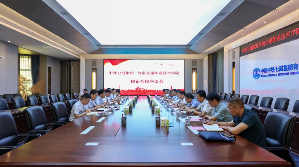焦宏涛一行参观了中铁七局初心使命馆,深入了解中铁七局发展历程、生产经营、企业党建等方面的情况。在随后的座谈会上,师建军介绍了中铁七局历史沿革,以及近年来改革发展、生产经营、人才培养等方面取得的成绩,并对河南交通职业技术学院一直以来给予的支持帮助表示感谢。他表示,中铁七局作为驻豫央企,双方具有良好的合作基础和条件,希望在教育培训、科技创新、人才引进与培养等方面继续深化沟通交流,促进双方合作取得更多成果。焦宏涛介绍了学校办学特色、专业设置、人才培养和实习就业等情况,他指出,访企拓岗不仅是为了拓宽毕业生就业渠道,更是为了调研企业实际人才需求状况,以此作为学校优化专业配置及各对口专业制定完善人才培养方案的客观依据,从而做到精准育才、定向培养,实现学生与岗位的无缝对接,尽快融入企业环境。他希望以此次调研为契机,双方充分发挥各自的特色和优势,在实习就业、科研合作、随企出海、职业培训等方面构建校企长期合作机制,努力打造校企深度融合的命运共同体。