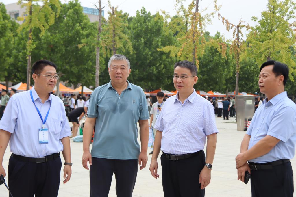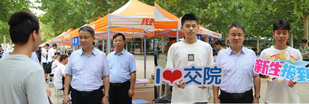 9月7日上午,校长焦宏涛、工会主席朱学军一行来到新生集中报到点、图书馆和学校大门口等,现场了解迎新工作进展情况,亲切看望前来报到的新生和家长,并慰问一线迎新工作人员,叮嘱大家要把服务学生放在首位,要精心组织,考虑周全每一个细节,让新生和家长感受到家一样的温暖和学校的关怀。