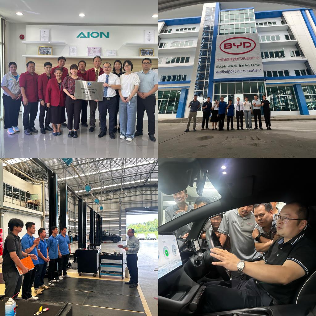 组团在泰期间,还考察了部分中资企业生产基地和销售、服务中心,并对企业维修人员开展了技术培训。在考察广汽埃安泰国生产基地和泰国东方科技学院比亚迪产业学院时,与企业管理人员和技术骨干进行了深入交流,向其介绍了代表国际新能源汽车发展方向的中国方案,并在广汽埃安泰国生产基地设立了河南交院海外工坊;在深入考察了广汽埃安和比亚迪汽车在春武里的多家销售及售后服务中心时,针对其在生产经营过程当中存在的问题和基本需求,现场对服务中心的售后服务人员进行技能培训和指导。