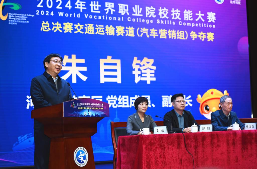 李怡民代表全国汽车职业教育教学指导委员会对大赛举办表示热烈祝贺。他表示,举办世界职业院校技能大赛,是落实习近平总书记关于职业教育重要指示批示精神、深化职业教育改革的具体举措,目的是进一步强化大赛综合育人功能,为中外青年提供展示技能、切磋技艺的平台,打造职业教育国际品牌。他指出,本次大赛是全国职业院校技能大赛的全面升级,规格高、项目多、规模大,希望各院校以大赛为互学互鉴的平台,以赛促教、以赛促学、以赛促新、以赛促用,不断创新职业教育人才培养模式,全面提高人才培养质量,培养更多大国工匠、能工巧匠、高技能人才,共同推进汽车类职业教育改革,推动以“车路云一体化”发展为代表的新质生产力发展。相信在河南省教育厅的支持和河南交通职业技术学院的精心组织下,在各位裁判员和各位参赛选手的共同努力下,大赛一定能办出水平、办出特色、办出成效。