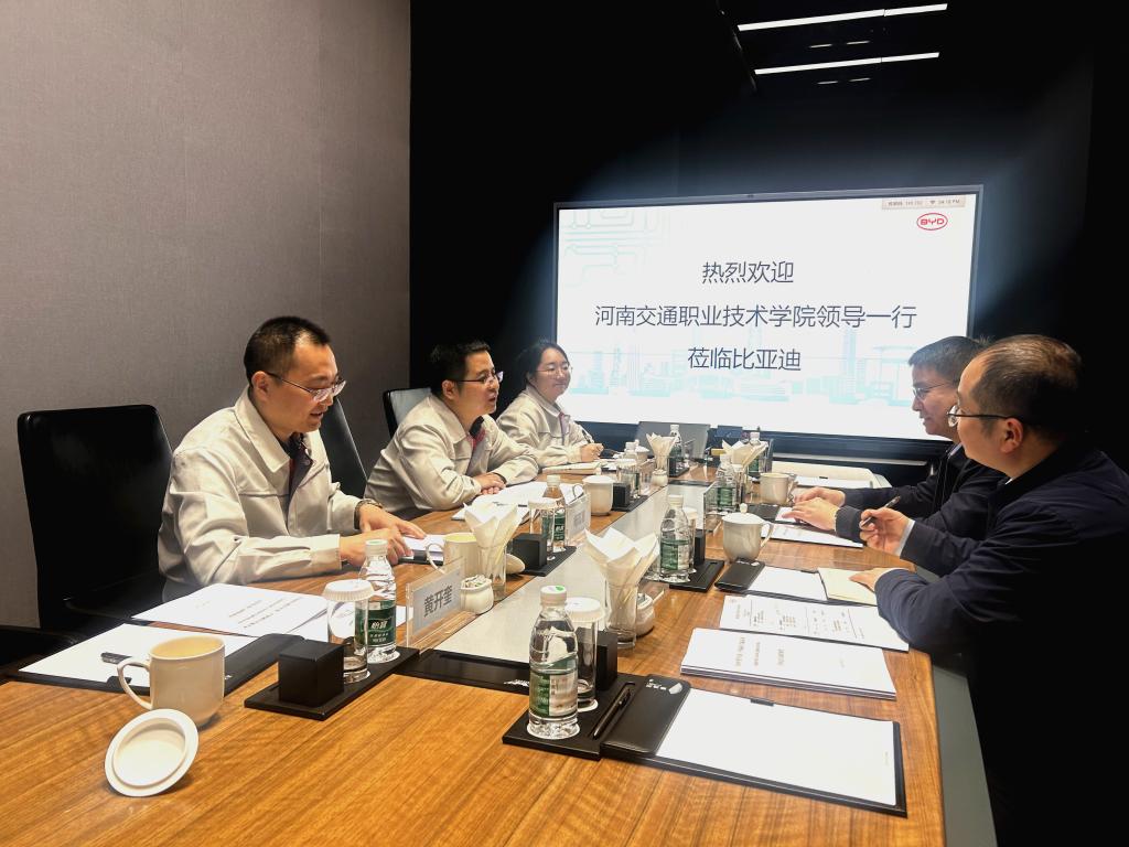蒋平对焦宏涛一行表示欢迎,详细介绍了公司近年来的发展情况、人才理念、业务布局及比亚迪郑州生产基地未来发展规划等方面情况。他表示,非常希望和河南交通职业技术学院在前期共建产业学院和产教融合实训基地的基础上,加强合作、积极构建产教融合新模式,打造河南职业教育与比亚迪合作的新标杆。