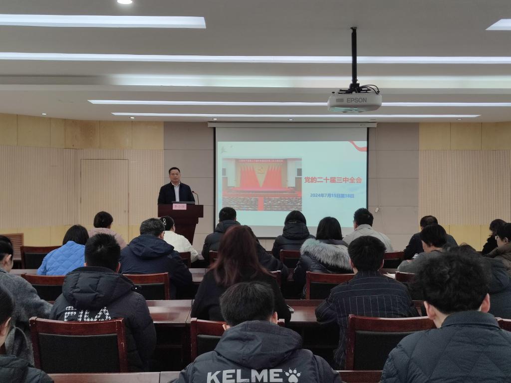 李⼩强从党的二十届三中全会的召开背景和现实意义出发,结合当前复杂的国际国内形势,首先用三个面对、四个意义、五个现代化深入浅出的理清了党的二十届三中全会整体脉络;接着用生动的案例和国际热点分析了中国发展面临的挑战与机遇,阐述中国为什么要进一步深化改革,改革的方向,改革具体措施有哪些;最后把学习贯彻党的二十届三中全会精神与推进国家级“双高”申报及建设工作结合起来,要求师生党员员工提高政治担当,在党的二十届三中全会精神的指引下,认真落实教育、科技、人才一体推进的战略部署,坚定走好内涵发展之路、改革创新之路、开放合作之路、科学治理之路,全面推动国家级“双高”申报及建设工作,加快建成具有中国特色世界影响的高水平职业学校。