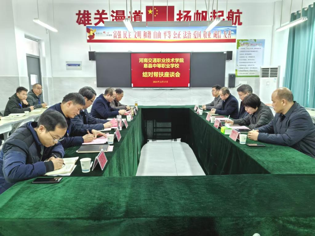 为深入贯彻落实省委、省政府关于巩固拓展脱贫攻坚成果同乡村振兴有效衔接的决策部署,扎实推进校地结对帮扶工作,12月17日,校长焦宏涛带队赴息县调研校地结对帮扶工作。息县县委书记管保臣、县长郑春等县领导与调研组一行进行深入的交流座谈,座谈会由县委常委、宣传部部长贡少辉主持,息县教育体育局、交通运输局、中等职业学校等单位负责同志陪同调研,学校党委副书记李菡、帮扶工作队、汽车学院相关负责同志参加调研。