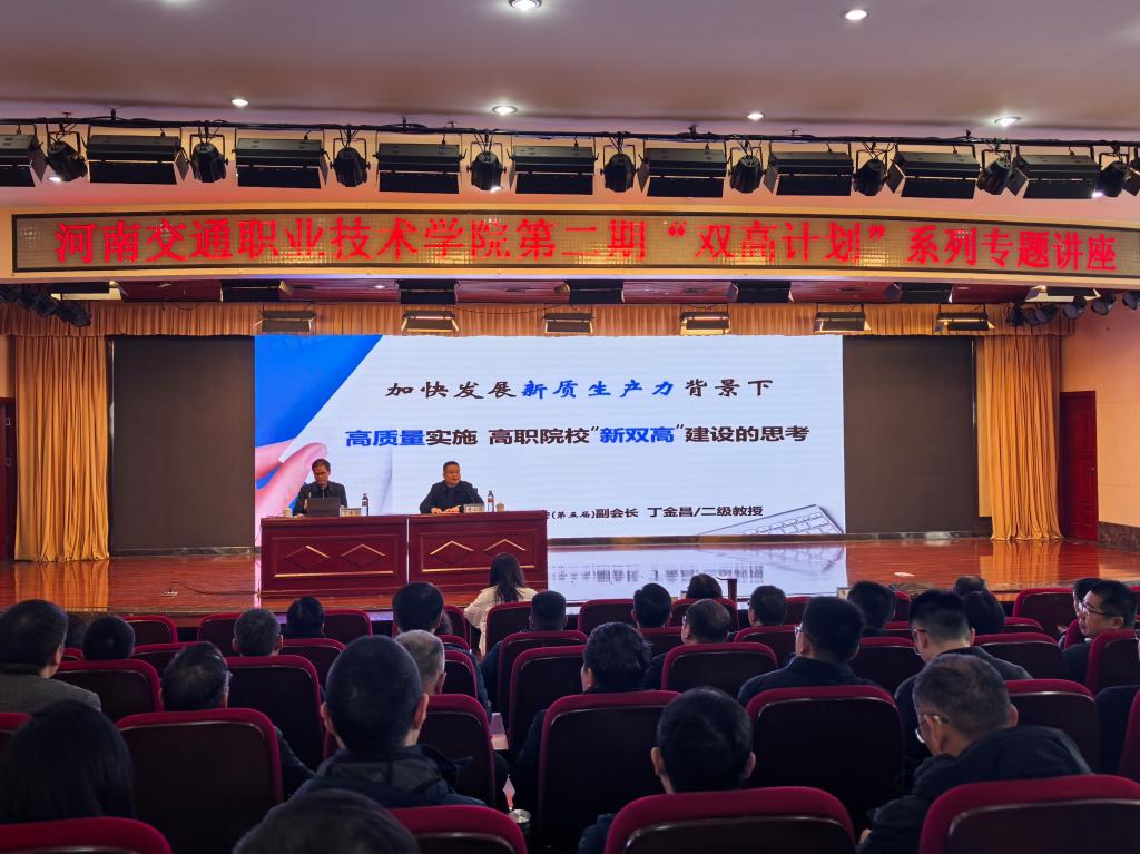 为深化对第二期“双高计划”内涵的理解,理清思路、凝聚共识,3月18日,学校特邀国务院政府特殊津贴专家、原中国职业技术教育学会副会长丁金昌教授,在郑东校区图书馆报告厅作题为“加快发展新质生产力背景下高质量实施高职院校‘新双高’建设的思考”专题报告。副校长刘芝梅、王玮出席会议,副科级以上干部及公路学院、汽车学院教师代表260余人参会,讲座由副校长李小强主持。