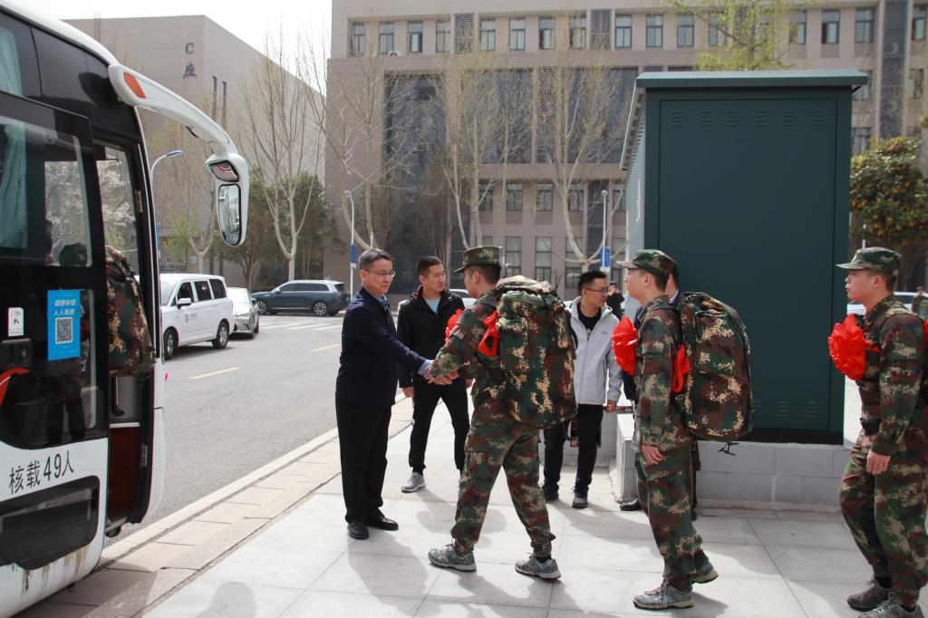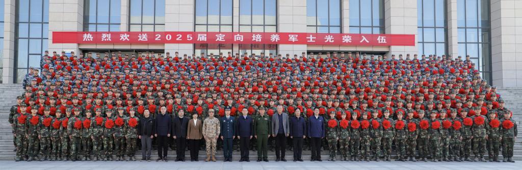 3月19日,学校在郑东校区举行2025届定向培养军士光荣入伍欢送大会。河南省军区动员局参谋尚志坤、郑州警备区动员处上校处长尚永新、郑州市二七区人武部政工科科长徐义文、校长焦宏涛、工会主席朱学军出席大会,各职能部门和培养院系负责人参加大会,党委副书记李菡主持大会。