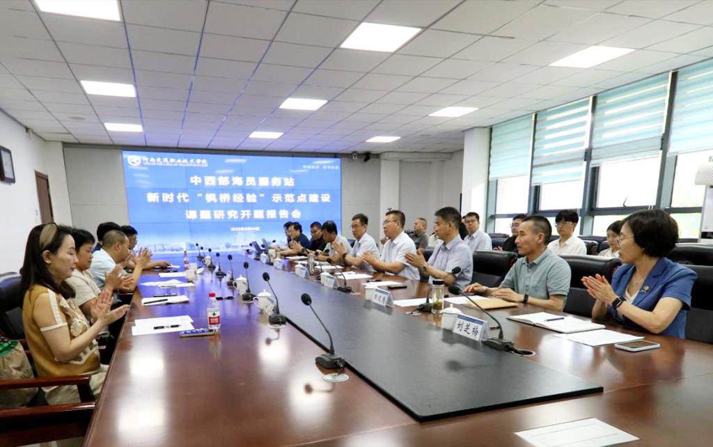 6月24日,在世界海员日来临之际,中西部海员服务站新时代“枫桥经验”示范点建设交流会在学校郑东校区召开。天津海事局船员处处长、二级巡视员李智青,上海海事局二级巡视员夏大荣,学校校长焦宏涛、副校长刘芝梅,天津市船员服务行业协会会长张景增等领导和船员协会相关企业负责人参加会议。