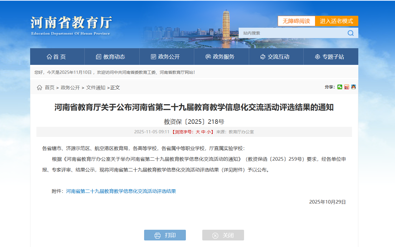 近日,河南省教育厅发布《关于公布河南省第二十九届教育教学信息化交流活动评选结果的通知》,学校荣获高等教育组一等奖3项、二等奖3项、三等奖6项。