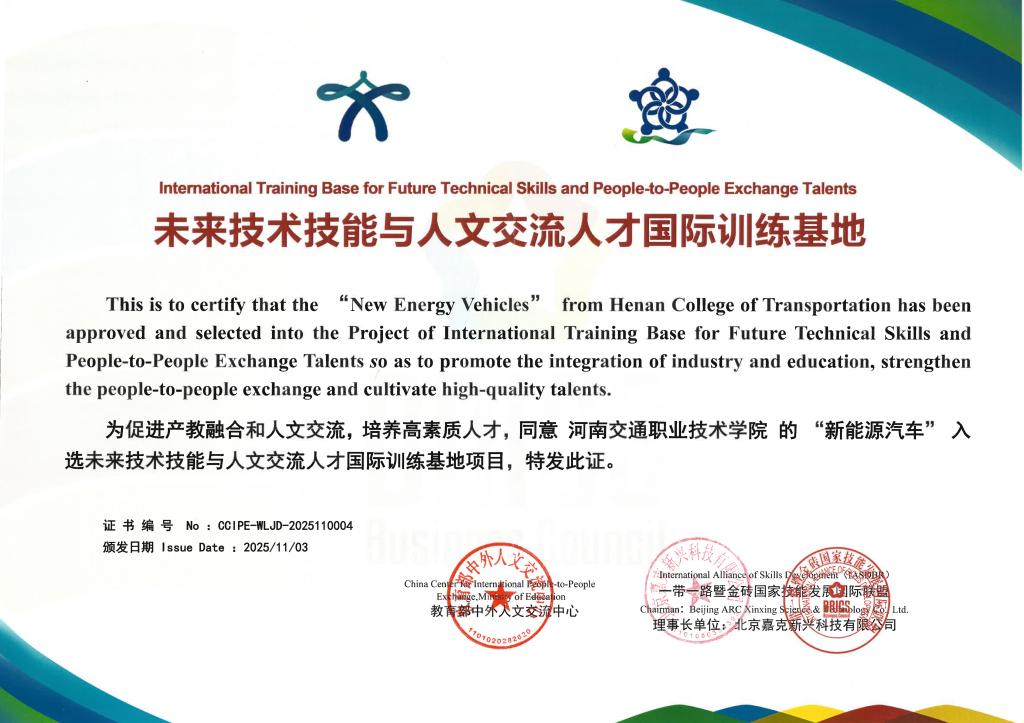 学校新能源汽车金砖国家未来技能国际培训基地(金砖工坊)正式获批教育部国际合作交流项目,标志着学校“双高”建设的又一国际化建设成果成功落地。下一步,学校将紧密对接金砖国家新能源产业、交通产业升级需求,聚焦国际化“金专业、金课程、金师资、金基地和金教材”建设,依托金砖国家未来技能国际培训基地(金砖工坊)项目,坚持以教促产、以产助教,充分发挥学校“大河工坊”职教出海品牌在新能源汽车领域的专业优势,持续输出中国职业教育标准,高质量培育未来国际技能人才,促进校企协同走出去和国际产教融合走深走实,为中国职教出海探索河南交院方案。