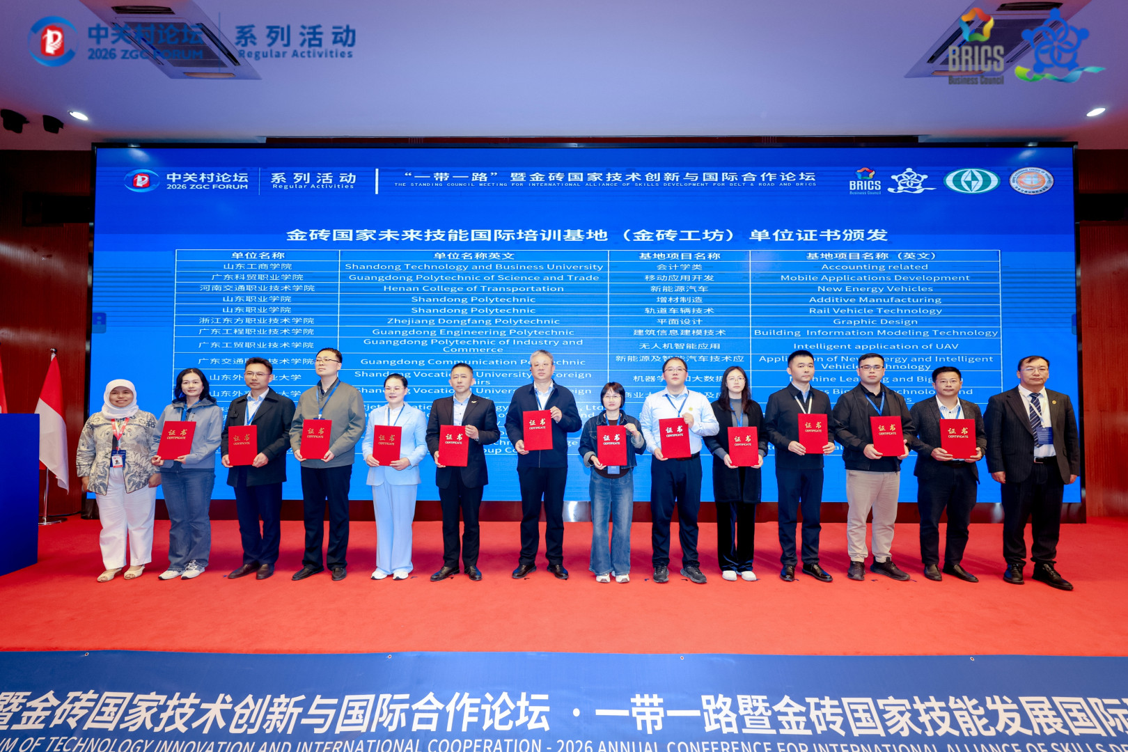 4月17日上午,2026中关村论坛系列活动——“一带一路”暨金砖国家技术创新与国际合作论坛在北京交通运输职业学院举行。学校新能源汽车基地项目入选教育部中外人文交流中心与“一带一路”暨金砖国家技能发展国际联盟认证的金砖国家未来技能国际培训基地(金砖工坊)。